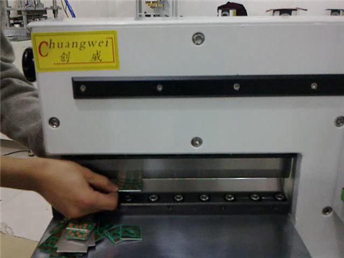 6、PC板推到鍘刀可切割范圍內(nèi)并踩下踏板,用手輕輕扶住PC板直到整個程序完成。