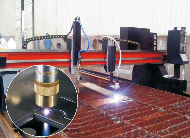 等離子切割工作原理是加熱到高溫被高度電離的氣體,然后將電弧功率轉(zhuǎn)移刀工件上,是工件融化且吹走,達(dá)成切割效果。等離子切割領(lǐng)域?qū)挘梢郧懈钏械慕饘侔宀?,切割速度快,精度可以達(dá)10m/min。